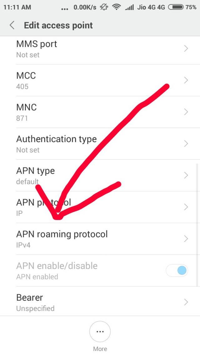 सबसे पहले अपने एंड्राइड मोबाइल की सेटिंग में जाए। फिर सेटिंग में मोबाइल नेटवर्क को चुने। अब एक्सेस पॉइंट को चुने। एक्सेस पॉइंट में जिओ नेट को चुने। इसमे एपीएन प्रोटोकाल ऑप्शन में आईपीवी 4 को चुन लें।